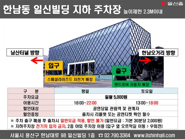 [일신홀] 찾아오는길 · 주차장이용안내 페이지 정보 작성자 일신홀 작성일19-11-26 14:38 조회24,101회 댓글0건 관련링크 이전글 다음글 목록 본문 [일신홀] 찾아오는길 · 주차장이용안내 이전글 다음글 목록